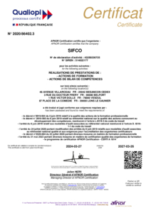 SIFCO certifié ISO 9001 – Version 2015 depuis 1998 et QUALIOPI au titre des actions de formation et bilans de compétences depuis mars 2022